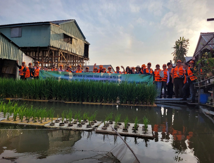 Hành trình khảo sát bắt đầu tại Bến Ô Môi, đoàn di chuyển bằng tàu du lịch, tham quan và ngắm bình minh trên Chợ nổi Long Xuyên, thưởng thức bữa ăn sáng bồng bềnh sông nước nhưng đầy thú vị. Hoạt động này mang lại cảm giác chân thực về nhịp sống và văn hóa sông nước đặc trưng của Nam Bộ nói chung và An Giang nói riêng. Đoàn cũng tìm hiểu về mô hình nuôi cá bè trên sông Hậu, cho cá ăn và tham quan, trải nghiệm mô hình trồng lúa, hoa kiểng thủy canh của chủ cơ sở.