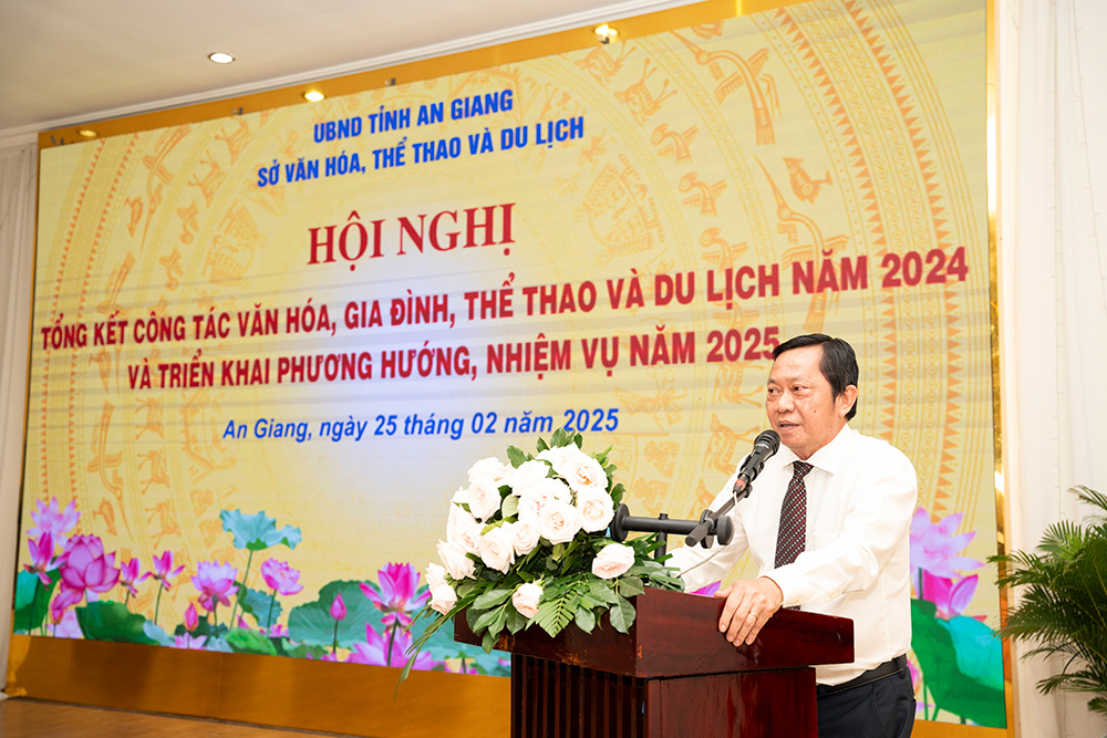 Phát biểu chỉ đạo hội nghị, Giám đốc Sở Văn hóa, Thể thao và Du lịch tỉnh An Giang Nguyễn Khánh Hiệp nhấn mạnh: Ngành văn hóa, gia đình, thể thao và du lịch tiếp tục phát huy những thành tựu đạt được và khắc phục những hạn chế, tồn tại trong năm 2024 và phấn đấu hoàn thành các nhiệm vụ chính trị và mục tiêu phát triển đã đề ra trong năm 2025, tạo tiền đề căn bản phấn đấu hoàn thành kế hoạch 5 năm 2021 - 2025, tích cực góp phần cùng với các ngành và địa phương hoàn thành mục tiêu phát triển kinh tế - xã hội của tỉnh.